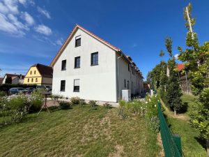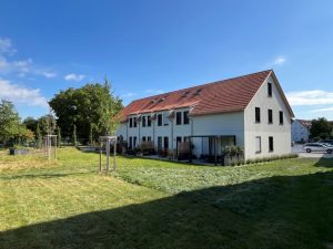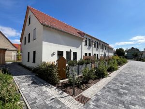 Es entstanden zwei dreigeschossige Mehrfamilienhäuser mit je 4 Wohneinheiten im Reihenhausstil.